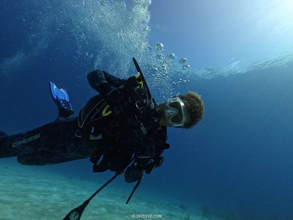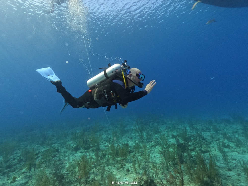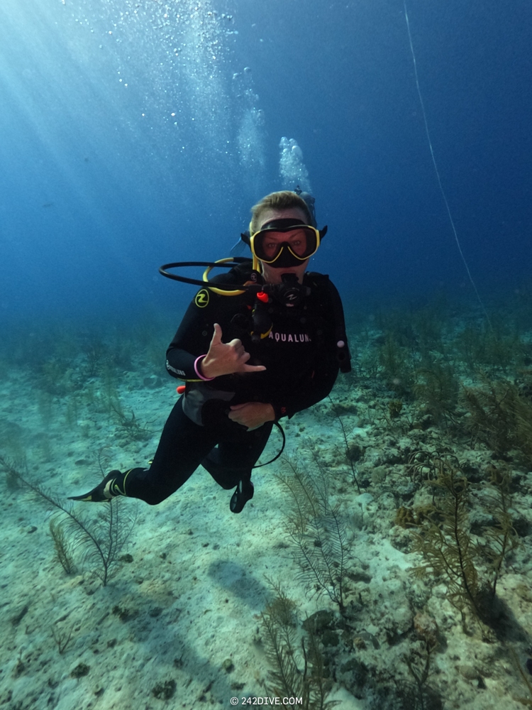| I am sure I have started a paragraph on this site with, “things happen for a reason”. I am a firm believer in that. Still though, I am not giving up on the delusion of free will. However, that is a story for another time. Let’s go with the first concept. Upon walking into Stuart Cove’s this morning, I was asked if I wanted to go on their shark dive. I am guessing that the other boat was getting a little crowded or they had voted me off for some unknown reason lol. For those that know me, I have never wanted to do the shark feeding dive. Again, we can go into the details later. I had always heard divers rave about it, but it just wasn’t my cup of tea. However, in the spirit of support, I said sure, let’s do it. I then went to convert Nicola, another dive club member, to join me. He agreed and we were off!