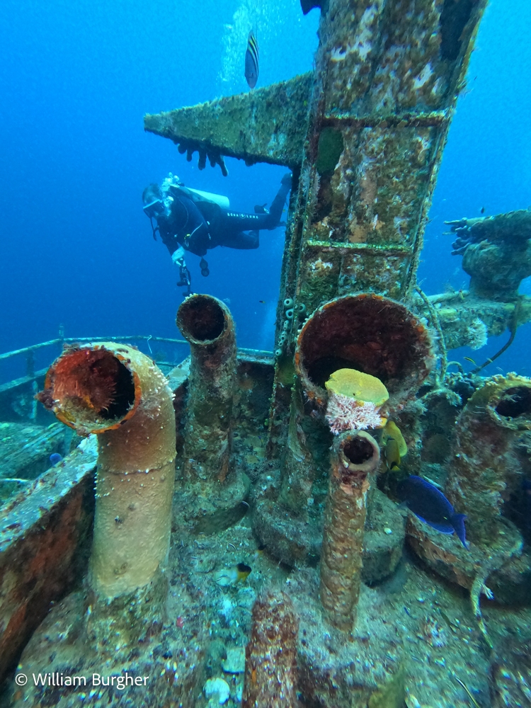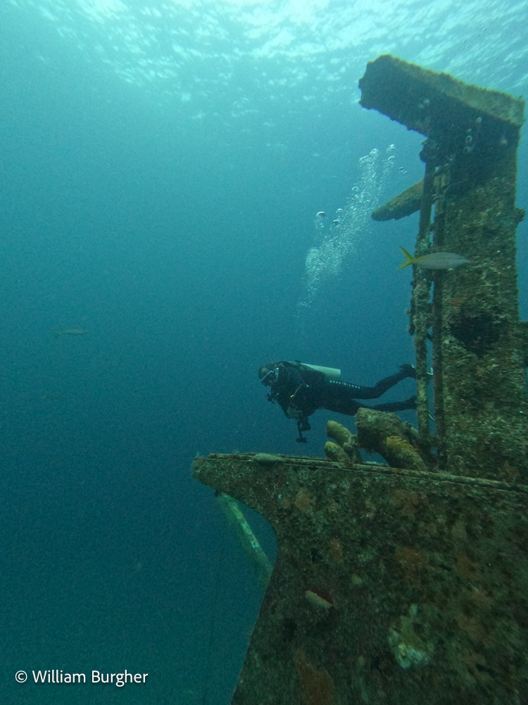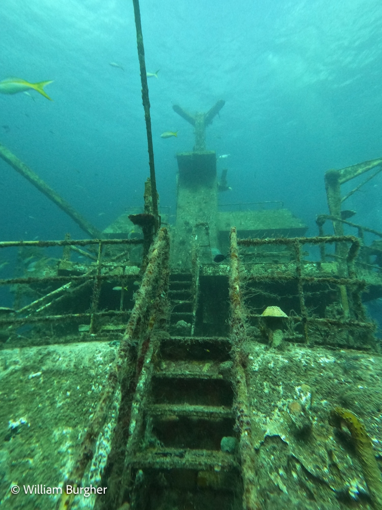| It was a day of diving with old friends. First, I was greeted by the ever smiling Don while signing up at the main desk and then found out they had put me on the Black Coral. The Black Coral is one of the smaller and faster of the Stuart Cove fleet. She is a flat top with easy side mount entry. Both Don and the Black Coral bring back some great dive memories! I new it was going to be a great day! Capt. Brent and the crew took us to Sea Trader and the Ridge. Hope you like the photos from the first dive…. |