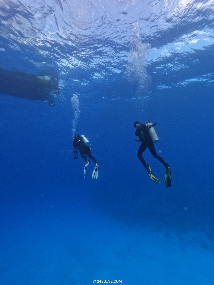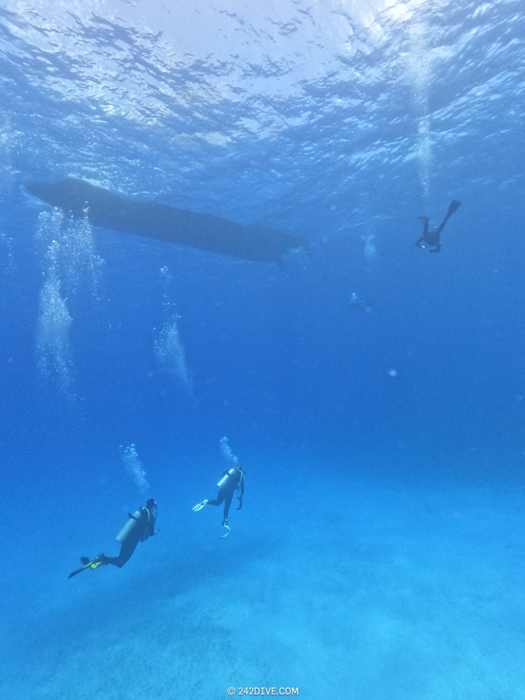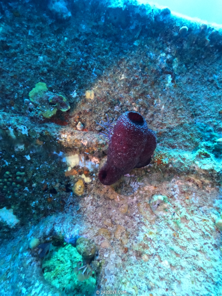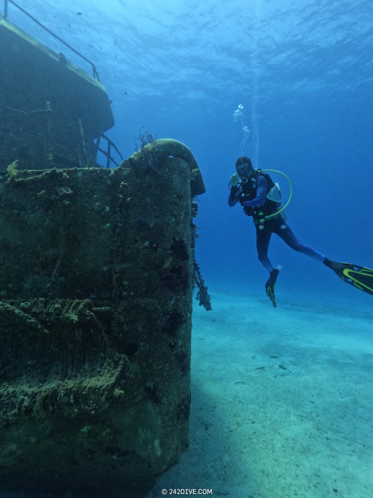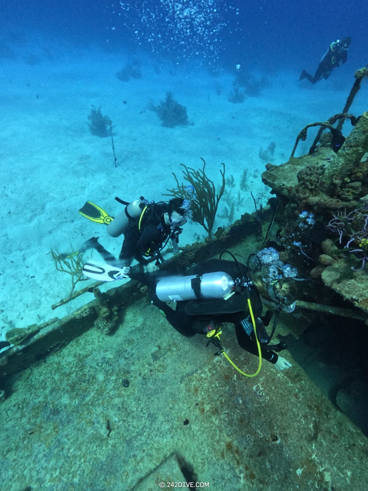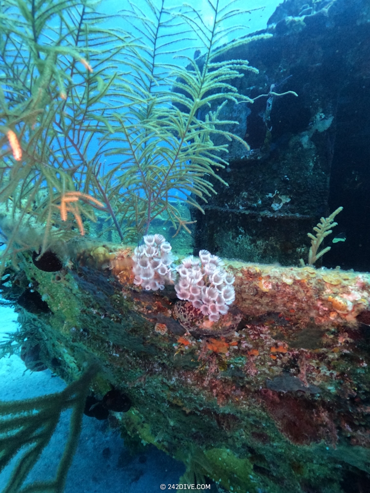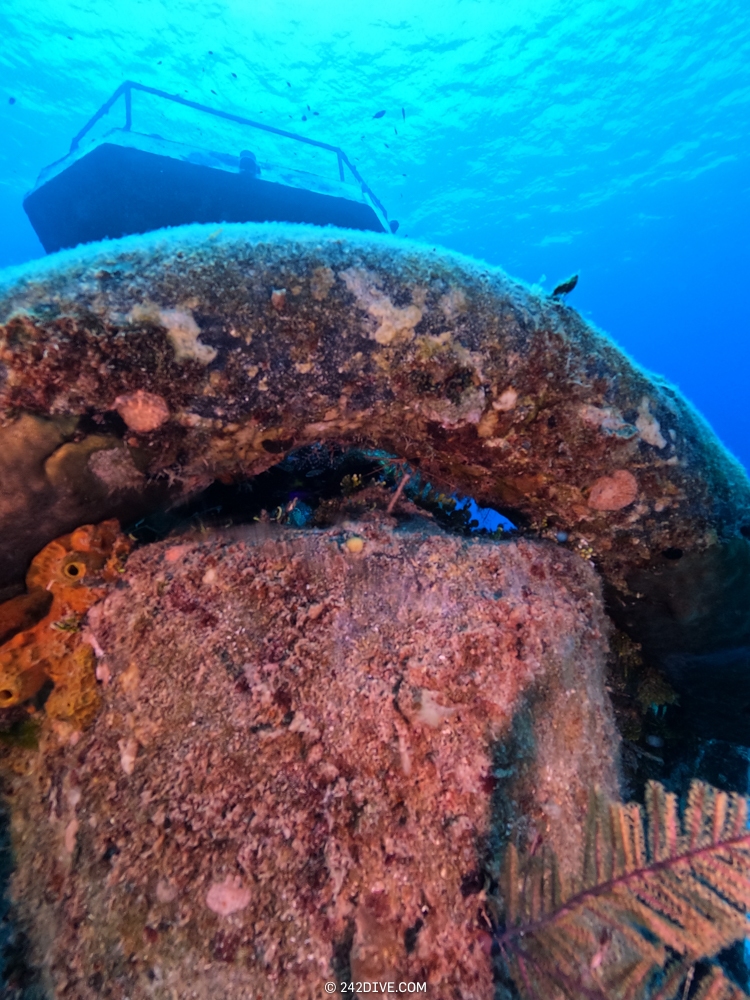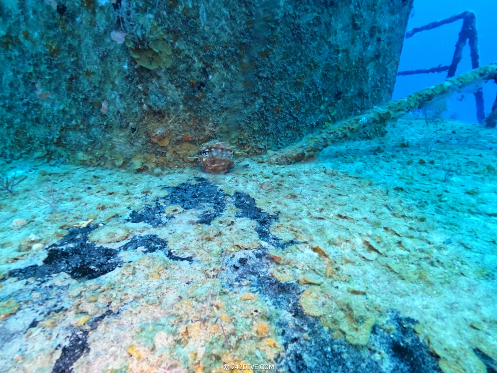 | Well a deffo interesting start to our second dive. I had a tank valve o-ring blow when I was changing over from the first dive. Rene was ready and quickly fixed that. So just as I am about to jump in (all geared up with the Guardian) it blows again. Thanks to Daniel’s quick reactions – he was able to shut the valve before I got a chance to sit back down. He saved the day and I was still able to use the tank. 2500psi was ample, although even with my best SAC to-date I still got to see the Shearwater’s “You are now in RESERVE air” warning! If you look the GPS location of Mike’s Reef, you will see that it is actually close to three other wrecks, The reef runs behind them all. Anyway, hope you like the pics! |