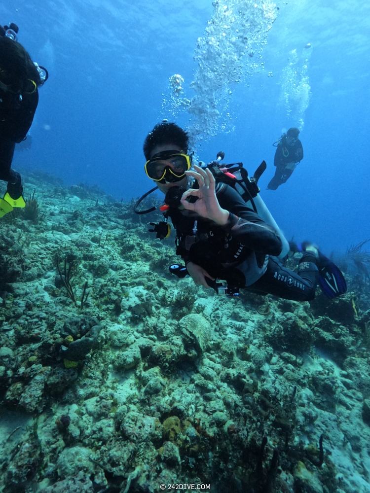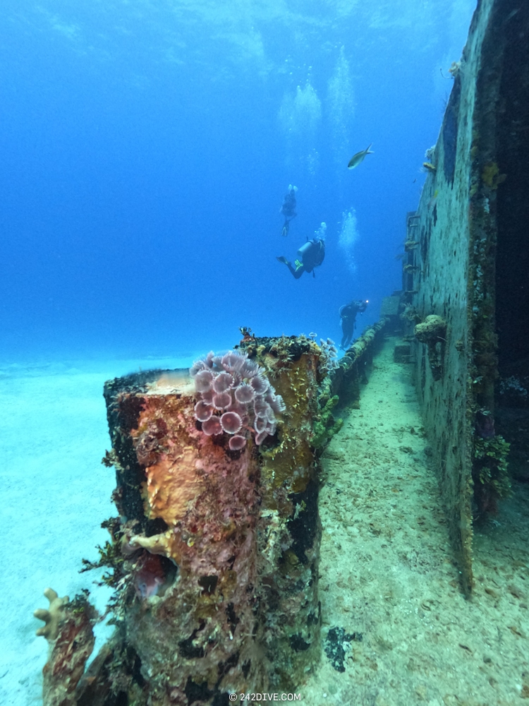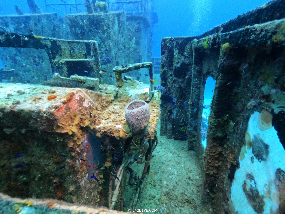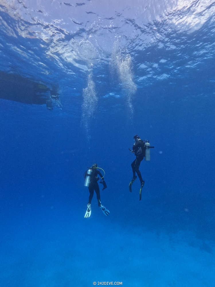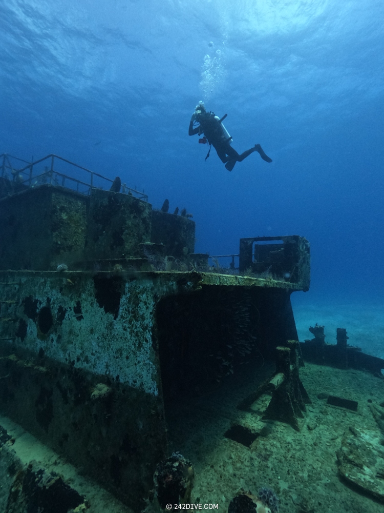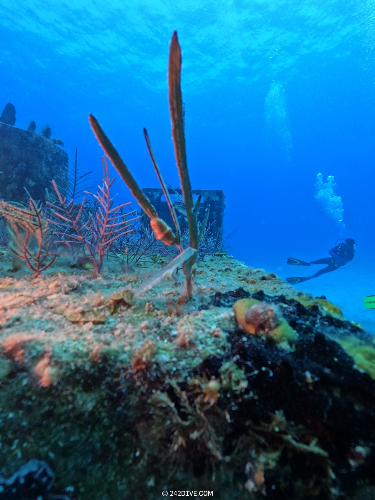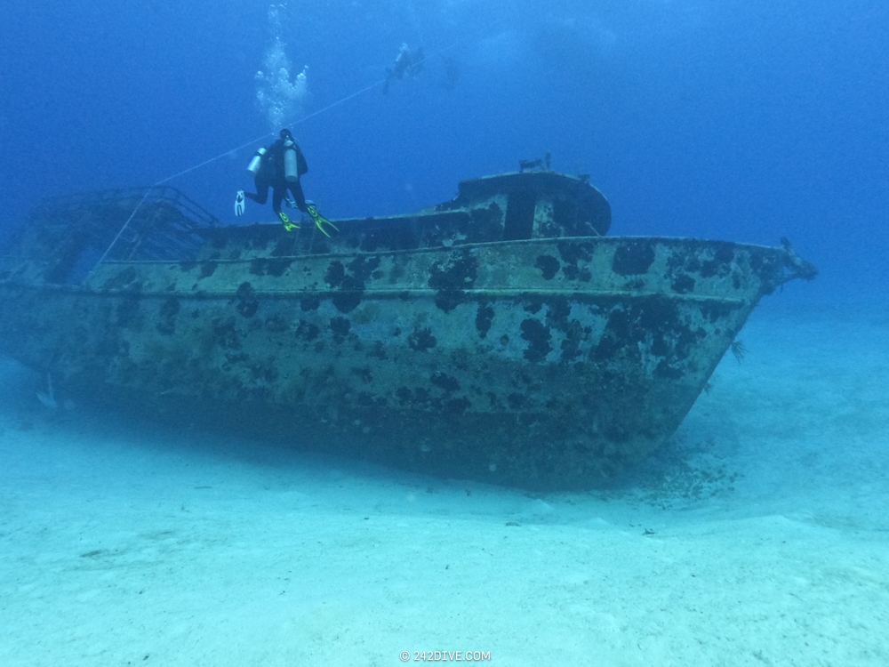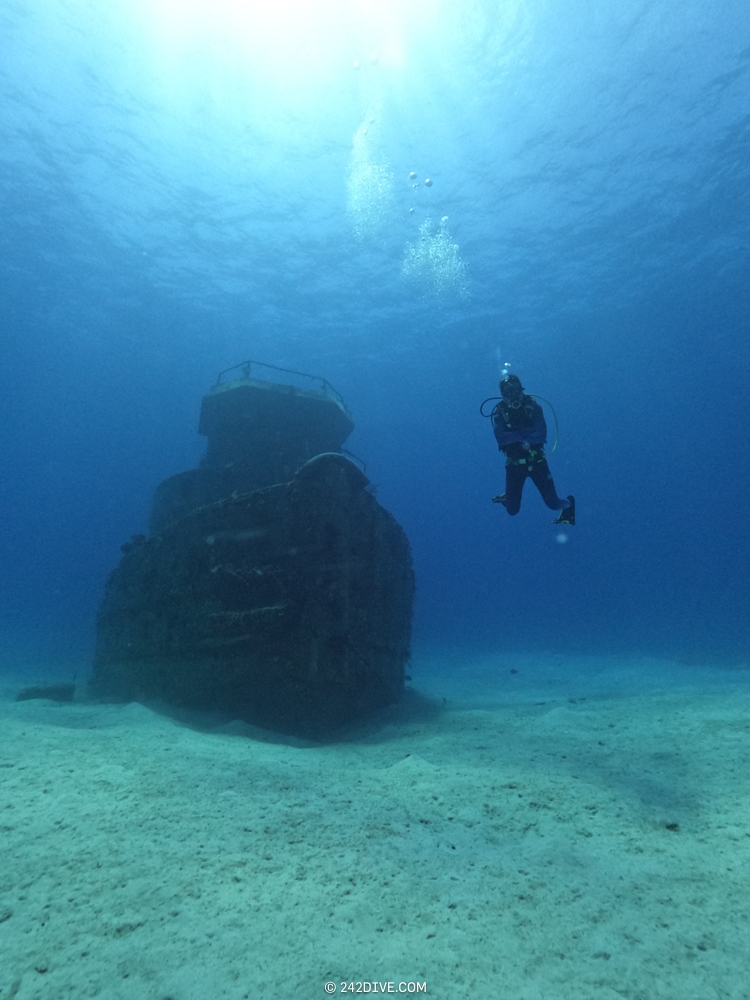 | Well a deffo interesting start to our second dive. I had a tank valve o-ring blow when I was changing over from the first dive. Rene was ready and quickly fixed that. So just as I am about to jump in (all geared up with the Guardian) it blows again. Thanks to Daniel’s quick reactions – he was able to shut the valve before I got a chance to sit back down. He saved the day and I was still able to use the tank. 2500psi was ample, although even with my best SAC to-date I still got to see the Shearwater’s “You are now in RESERVE air” warning! If you look the GPS location of Mike’s Reef, you will see that it is actually close to three other wrecks, The reef runs behind them all. Anyway, hope you like the pics! |
