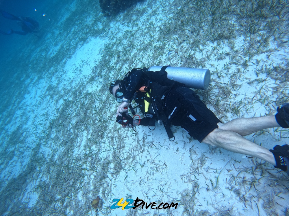 | With the rough seas and fairly remote location – finding a second dive site was a little issue. I would have preferred just doing the Blue Hole again, but was out voted (whaa) lol. That is the way the cookie crumbles my friends. I know what you thinking… 15′ reef dive and the swells would make for a bumpy dive – and you would be right. It still turned out to be a great little dive though. Hope you like the pics… |