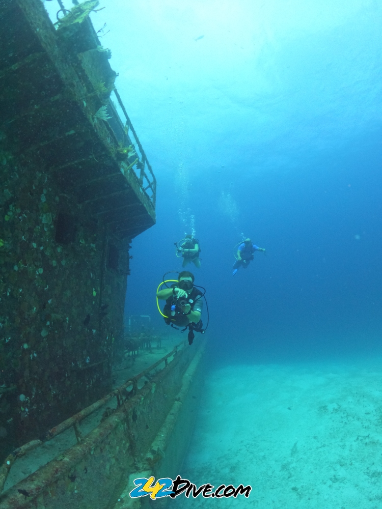 Our dive was the wreck of the Sea Trader. I really enjoy this dive. Not only do we have really wide swim throughs, but we do not know how long she is going to be with us, As you can see from the photos, her bow is already off the wall …. So anytime I get a chance to dive her, I am game. Hope you like the pics…. |