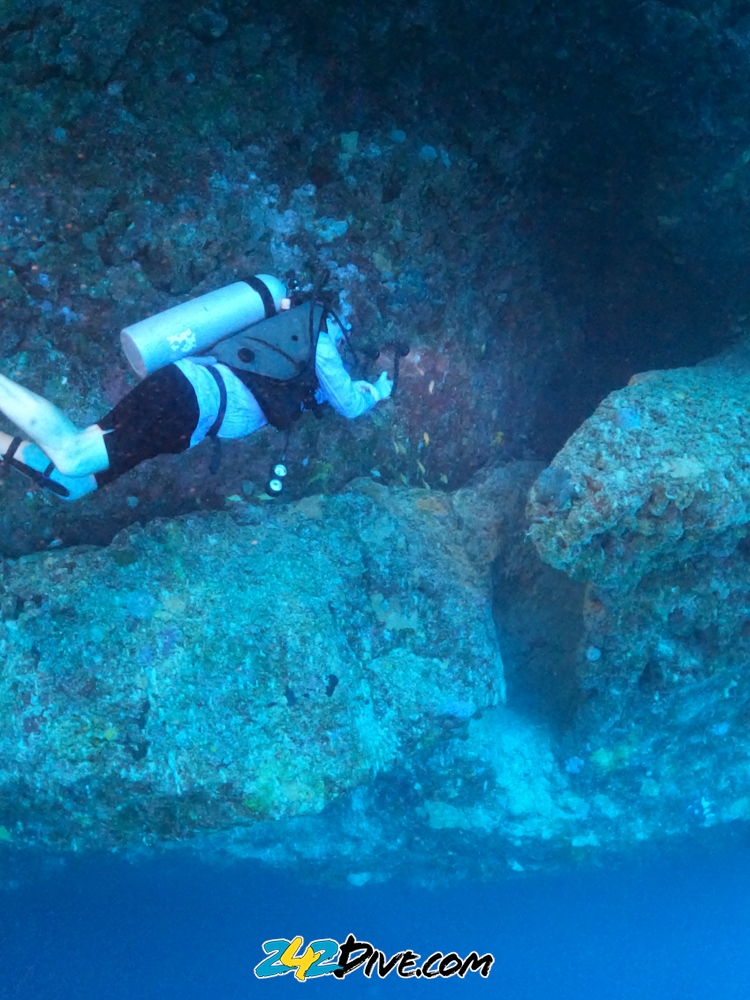 The Bahamas Dive Club is a beautiful mixture of divers… young, old, new, experienced … with a single passion for scuba diving. Every now and then they all get together for a day long dive trip, far away from the regular spots. Today it was the East and North of the island that got explored. It was also our first circumnavigation of New Providence. A special shout out to our Capt. Dario for navigating the extremely shallow southern route. The original plan was to do 3 different dive locations and be back by 5pm. Well, things don’t always go to plan. When diving The Lost Blue Hole, it is so easy to get enchanted by the site and this resulted in two dives at the same location. What can I say …. I would dive this site everyday if I could. Are there huge corals and lots of fish, no. There are some very rugged features, a small cavern and some very special encounters that you just don’t normally see. Hope you like the pics…. The next dive spot was the wreck of the Mahoney. This was my first time here and the first thing that got my attention was the amount of fish in and around the wreck. This ship certainly had an interesting life… you can read a little bit about it here. It is not a very deep wreck and is deffo worth your time to go see. Again hope you like the pics. |